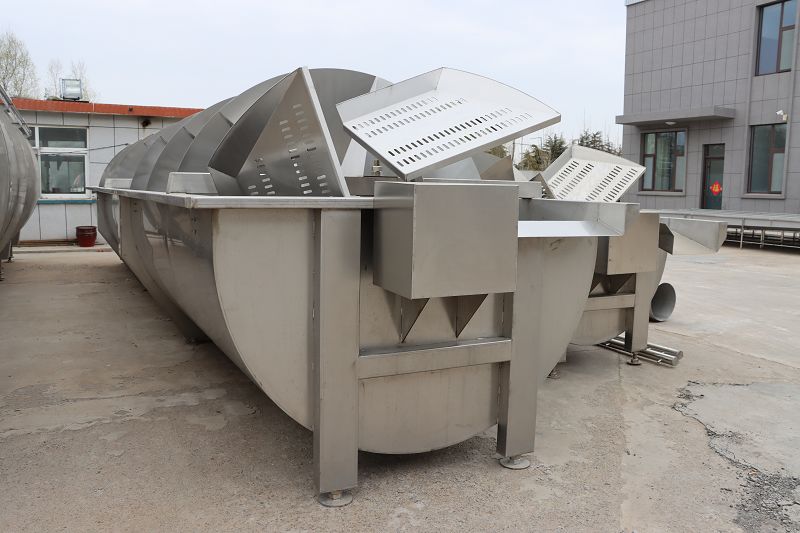 产品概述:该系列设备主要用于肉禽胴体掏脏后的降温冷却工作,同时达到脱酸,排毒提高出成率的目的 。根据客户的不同需求,生产的遇冷机有大包容型(图一)和半包容型(图二),半包型有 直径1600mm,1800mm,2000mm几个规格供客户选择,大包型有直径2000mm,2500mm和3000mm三个型号。